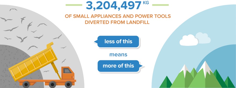 We’re going beyond the blue box … to your local depot where you can drop off more than 300 small appliance, power tool and exercise products, bid a fond farewell and know that they are going on to a second life. And with more than 160 drop-off locations province-wide, there’s one near you. You can find one close to you here.