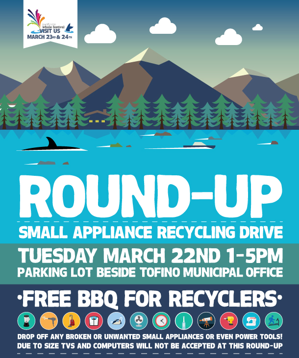 Our recycling round-up with the Municipality of Tofino on Vancouver Island was a huge hit! Free lunch for recyclers and a chance to recycle any small appliance, what’s not to love?